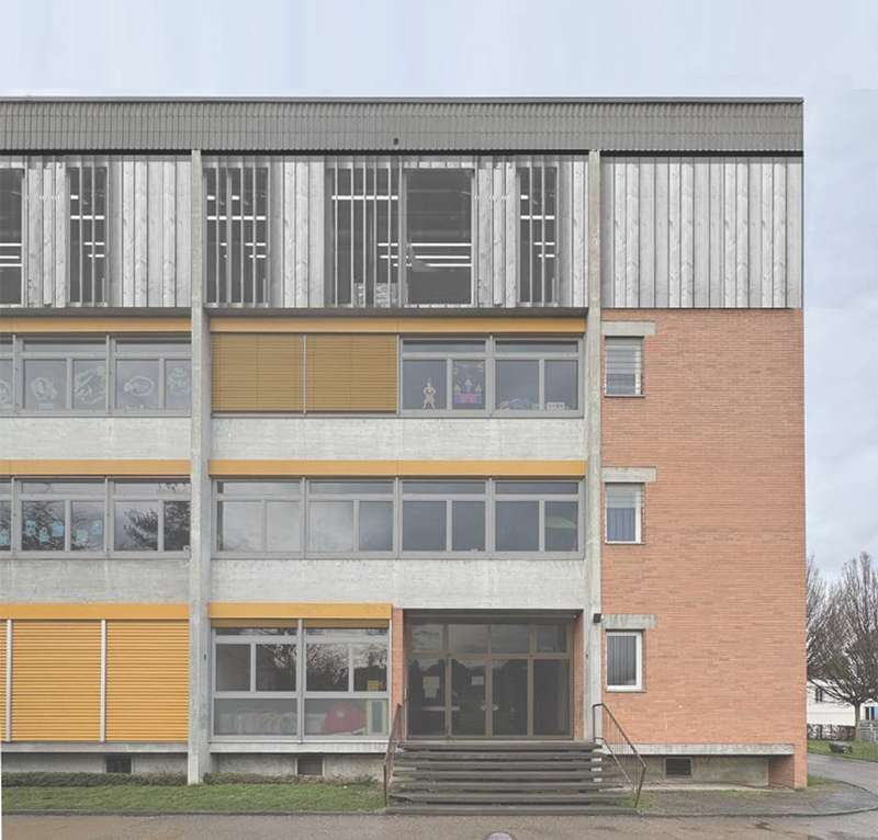 | _collège des 4 Marronniers, Yverdon-les-Bains, Suisse _propriété de la ville d'Yverdon-les-Bains // faisabilité surélévation et estimation budgétaire // mai 2024 ![]() |