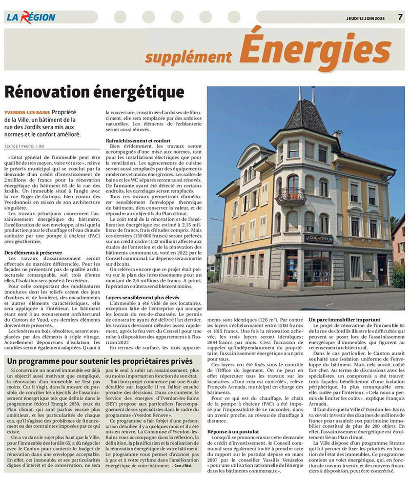 _rénovation énergétique complète d'un bâtiment classé, Yverdon-les-Bains, Suisse |